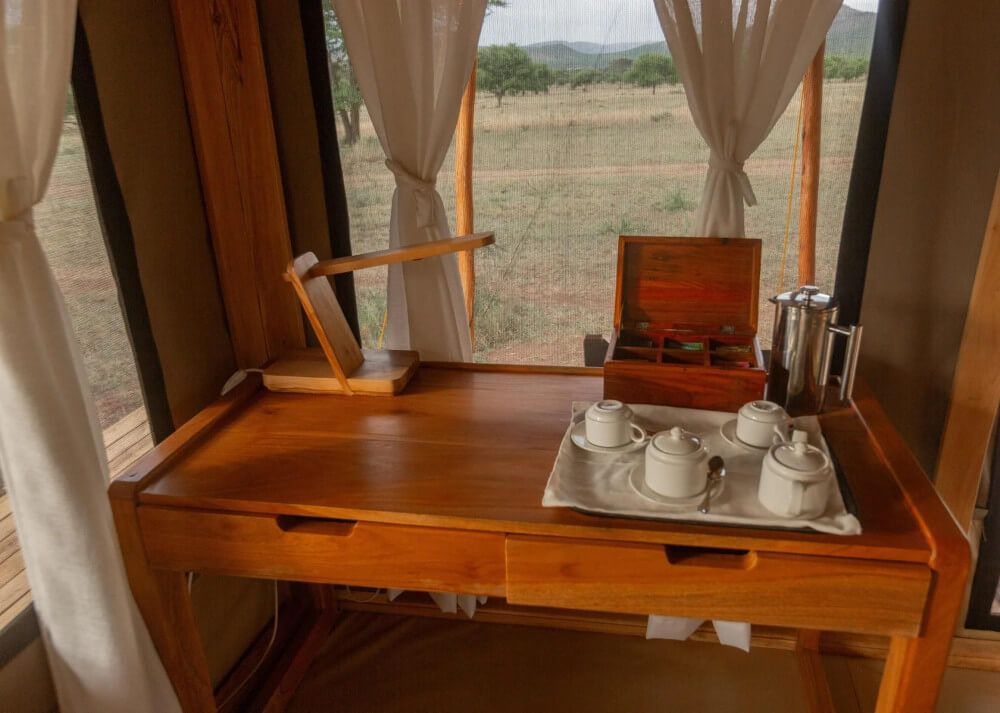 - Check into authentic safari camp with panoramic Serengeti views